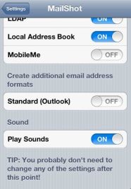 TIP: Any warnings that don’t apply to your email provider can be disabled on the MailShot page of the Settings app.