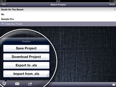 To import or export select the Dropbox logo at the bottom left of the project page, then choose the desired option.