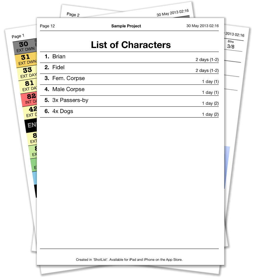 This update fixes a nasty crash bug on the shots pages, and adds two new report pages to the PDF and print options- a List Of Characters, and a List of Locations.