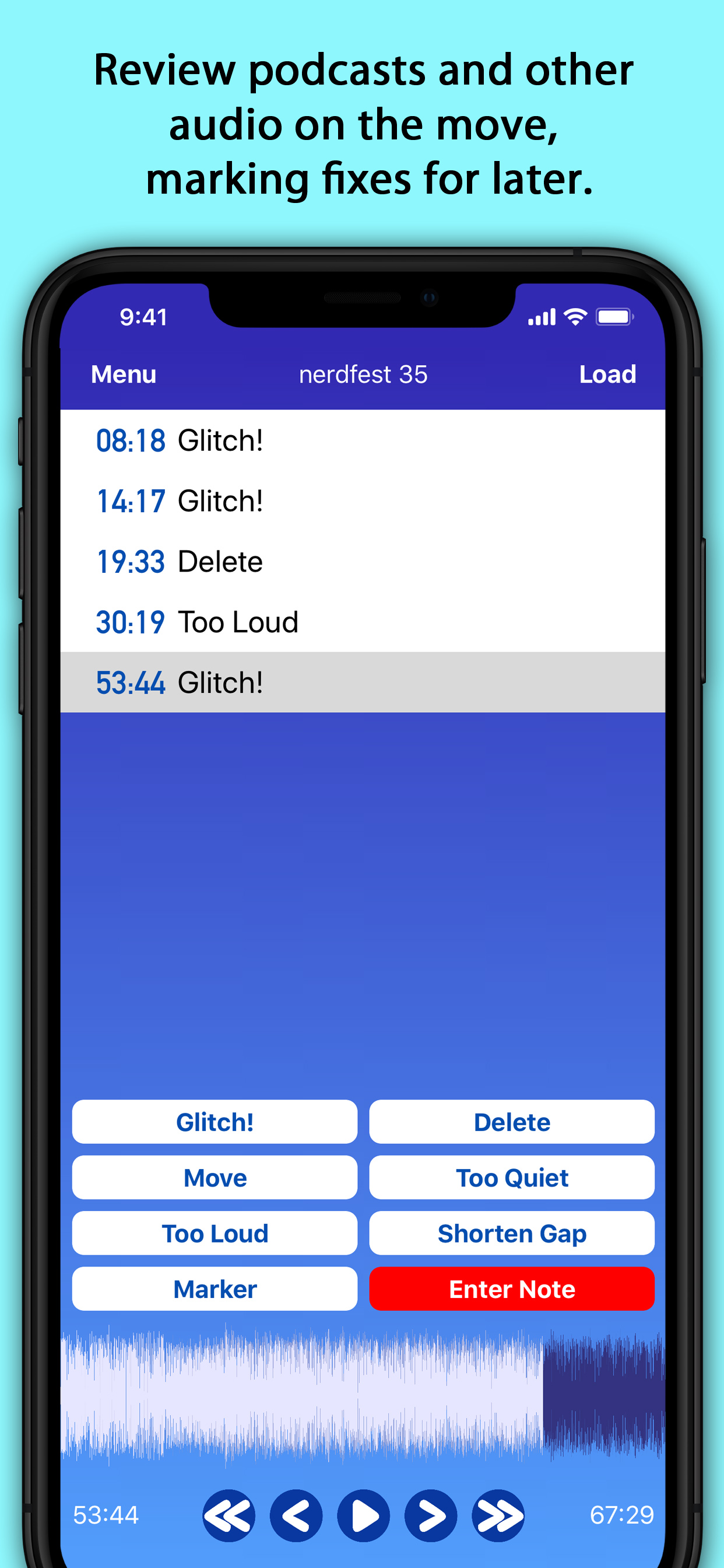 Wouldn’t you love to be able to review audio while doing something else (walking the dog, or travelling, maybe) and easily mark up any problems to fix later. this can be useful when reviewing files before an edit, or afterwards to listen through.