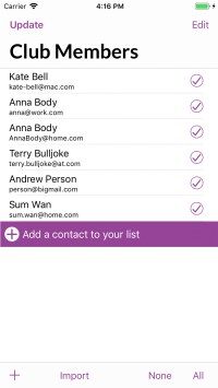 You arrive here as you create a group, or by tapping “>” to edit a group from the Groups page. Tap “Update” to return to Groups.