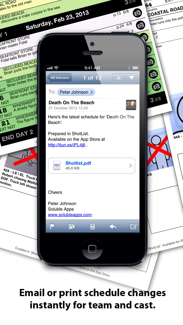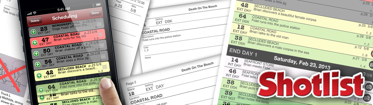 Soluble Apps announced ShotList 4.0, a major update to their professional-quality filmmaking scheduling tool for iOS devices. ShotList brings a Production Stripboard system to mobile devices for the first time, allowing the planning and tracking of every scene of a shoot as it happens. The app can be used as a daily To Do list on larger productions. This new version adds printing, full colour schedule updates, xls export, and enhanced detail per shot.